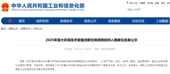 2025年重大環(huán)保技術(shù)裝備創(chuàng)新任務(wù)揭榜掛帥入圍單位名單公示
