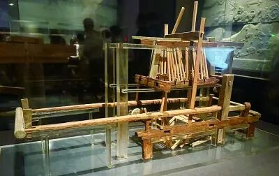 成都博物館展出的老官山漢墓出土的漢代提花織機(jī)原件
