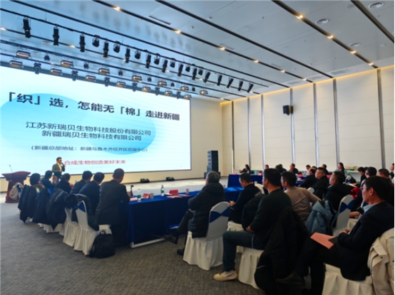 江蘇新瑞貝生物科技股份有限公司副董事長(zhǎng)林源杰介紹了公司在合成生物材料和生物基含量檢測(cè)兩大板塊的成果,特別是在合成生物標(biāo)準(zhǔn)制定方面,公司走在了市場(chǎng)前列,成為生物基賽道上綠色轉(zhuǎn)型的領(lǐng)跑者。林源杰指出,合成生物能夠幫助企業(yè)降成本10%以上,并且作為生態(tài)環(huán)境友好型產(chǎn)品,能夠?qū)崿F(xiàn)低碳零碳排放。未來(lái),公司將推動(dòng)生物基產(chǎn)品助力新疆紡織企業(yè)的綠色發(fā)展。