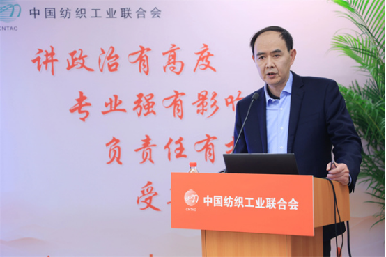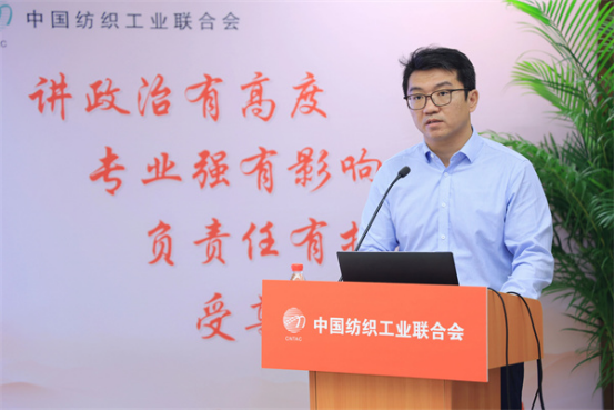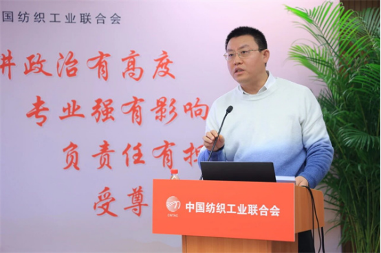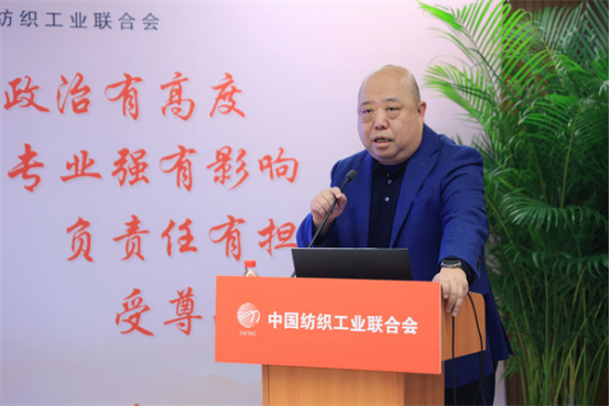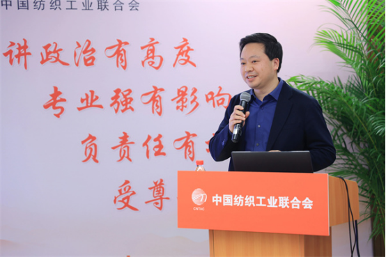 中國紡聯(lián)科技發(fā)展部主任張傳雄作主題為“科技創(chuàng)新賦能紡織健康產(chǎn)業(yè)發(fā)展”的專題分享。