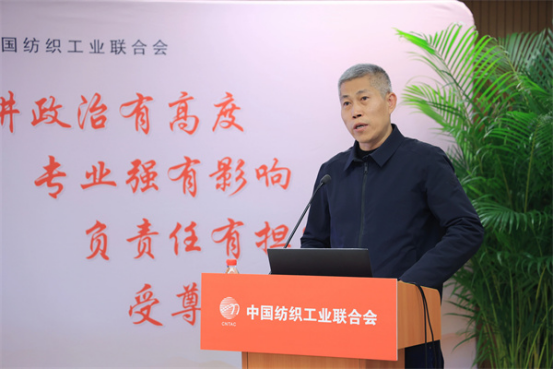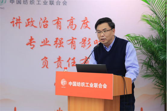 中國家用紡織品行業(yè)協(xié)會副會長劉兆祥作家紡行業(yè)經(jīng)濟運行分析及重點工作總結(jié)和展望。