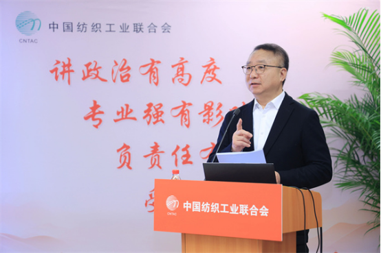 中國印染行業(yè)協(xié)會會長林琳作印染行業(yè)經(jīng)濟運行分析及重點工作總結(jié)和展望。