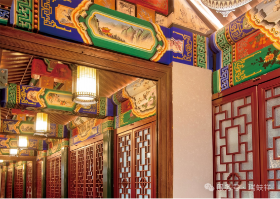 廳廊倚窗而設(shè),梁枋彩繪精美。這里有百年前自歐洲購(gòu)入的老穿衣鏡,映照中西交融的時(shí)代印記。