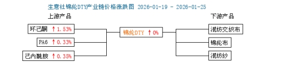 成本方面:上周(2026年1月19日至25日),原料己內(nèi)酰胺價格趨于平穩(wěn),成本端支撐一般,錦綸PA6切片市場走勢維穩(wěn),成本端支撐有限,截止2026年1月25日,生意社己內(nèi)酰胺基準價為9500元/噸,價格小幅上漲,周漲幅0.35%,對錦綸絲價格支撐有限。