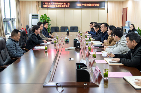 1月23日,云南省農(nóng)業(yè)科學(xué)院蠶桑蜜蜂研究所所長(zhǎng)耿玲德一行4人到廣西蠶業(yè)技術(shù)推廣站開(kāi)展蠶桑產(chǎn)業(yè)調(diào)研交流。
