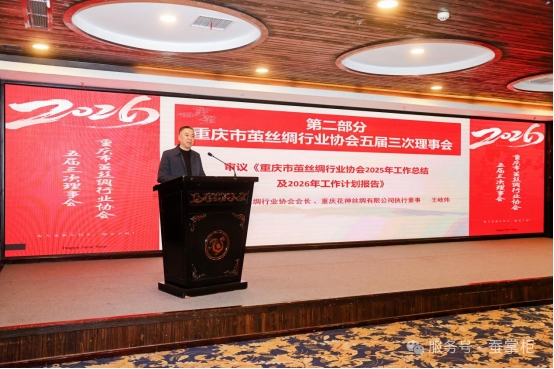 重慶市繭絲綢行業(yè)協(xié)會(huì)會(huì)長王岐煒作《2025年工作總結(jié)及2026年工作計(jì)劃報(bào)告》,全面總結(jié)2025年協(xié)會(huì)在經(jīng)費(fèi)有限、人員不足的情況下,以“小機(jī)構(gòu)、大服務(wù)”的工作模式,在技術(shù)培訓(xùn)、行業(yè)調(diào)研、品牌建設(shè)等多方面實(shí)現(xiàn)突破,有效發(fā)揮了橋梁紐帶作用。2026年,協(xié)會(huì)將圍繞“東綢西固”戰(zhàn)略和重慶市蠶桑絲綢產(chǎn)業(yè)高質(zhì)量發(fā)展“十五五”規(guī)劃,緊扣“技術(shù)提升、品牌升級、市場開拓”總體目標(biāo),深入推進(jìn)六大工作任務(wù),全力服務(wù)會(huì)員單位,推動(dòng)重慶市蠶桑繭絲綢產(chǎn)業(yè)高質(zhì)量發(fā)展。