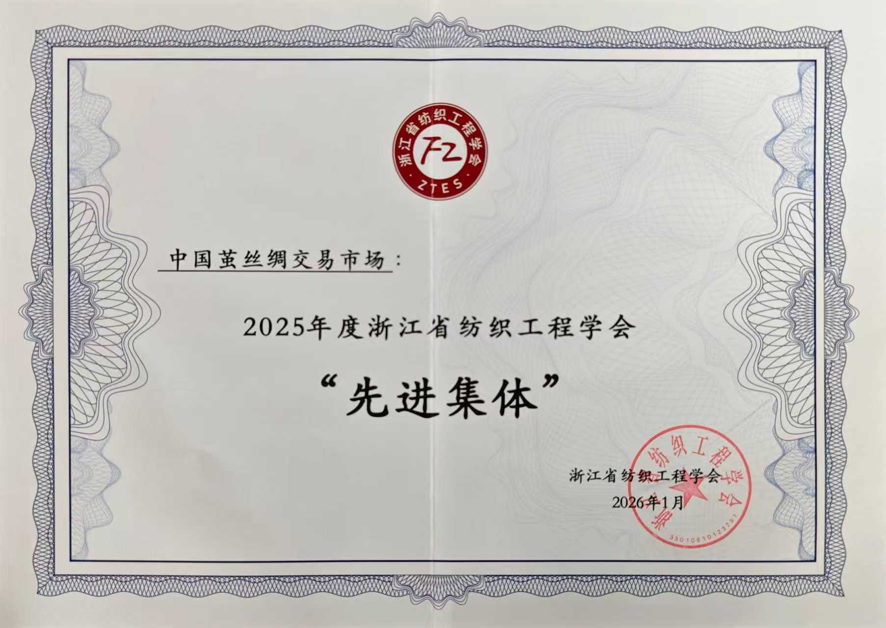 中國繭絲綢交易市場獲評2025年度浙江省紡織工程學(xué)會“先進(jìn)集體”獎項