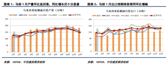 此外,馬棕較好的產(chǎn)量表現(xiàn)及仍處于高位的庫存,亦對(duì)BMD毛棕櫚油漲勢(shì)帶來制約。MPOA預(yù)計(jì)馬棕1-20日產(chǎn)量較上月同期減少14.43%,SPP(7664, -18.00, -0.23%)OMA預(yù)計(jì)馬棕1-25日產(chǎn)量較上月同期減少14.81%,按照1月產(chǎn)量環(huán)比降15%左右測(cè)算,馬棕1月產(chǎn)量同比增幅高達(dá)25.44%,且156萬噸左右的產(chǎn)量仍處于歷史同期較高水平。近期棕櫚油價(jià)格的快速反彈確實(shí)刺激了需求國補(bǔ)庫,但在印尼3月提稅前搶出口的背景下,馬棕1月出口增長(zhǎng)并沒有那么顯著。船運(yùn)調(diào)查機(jī)構(gòu)ITS及AmsSpec預(yù)計(jì)馬棕1月1-25日出口較上月同期增7.97%-9.97%,若機(jī)構(gòu)預(yù)估與最終出口增幅偏差不大,則馬棕1月出口將落在140萬噸左右。在產(chǎn)量環(huán)比下降及出口環(huán)比增長(zhǎng)的情況下,馬棕1月末庫存可能環(huán)比降20萬噸至285萬噸左右,雖有邊際改善卻仍處于同期高位。