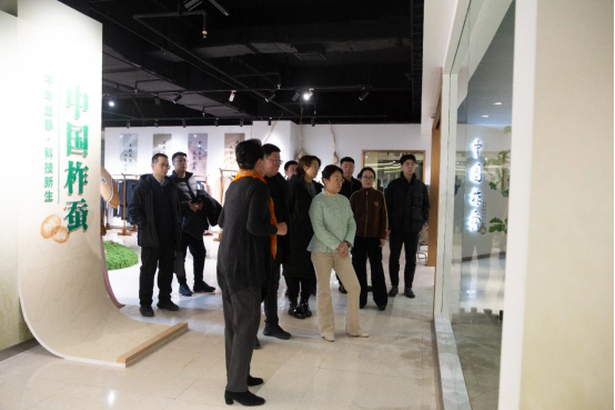 調(diào)研中,領(lǐng)導(dǎo)們沿著中國柞蠶展館動線,認(rèn)真觀看柞蠶歷史、文化、繅絲、織造、科技創(chuàng)新與綜合利用等展品、傳統(tǒng)技藝呈現(xiàn)及文化傳播相關(guān)情況,通過實(shí)物展示與圖文資料,直觀感受五千年柞蠶文化的深厚底蘊(yùn),柞蠶產(chǎn)業(yè)承載著歷史經(jīng)典技藝的傳承與使命。