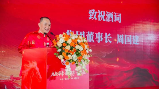 集團(tuán)董事長(zhǎng)周?chē)?guó)建先生致祝酒詞。回顧企業(yè)百億成就,感恩全體員工付出,隨后與現(xiàn)場(chǎng)嘉賓共同舉杯,祝愿嘉欣絲綢未來(lái)再譜新篇。