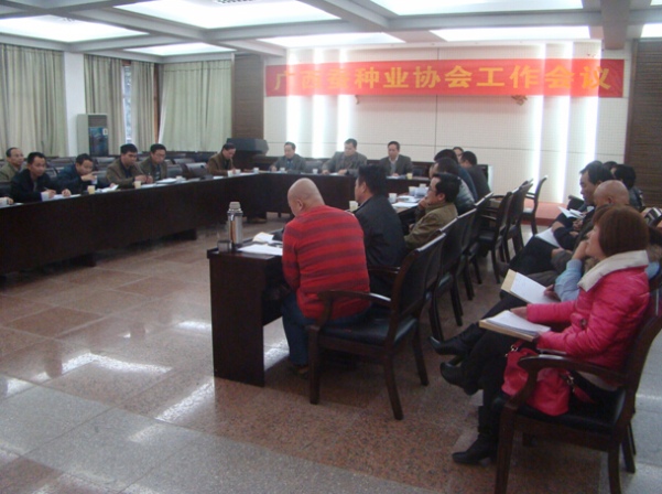 2015年2月10日下午,廣西蠶種業(yè)協(xié)會(huì)在南寧召開(kāi)2015年度第一次工作會(huì)議。全區(qū)30家蠶種場(chǎng)負(fù)責(zé)人以及廣西蠶業(yè)技術(shù)推廣總站相關(guān)人員共40多人參加了會(huì)議。會(huì)議由廣西蠶種業(yè)協(xié)會(huì)秘書(shū)長(zhǎng)蔣滿貴主持。