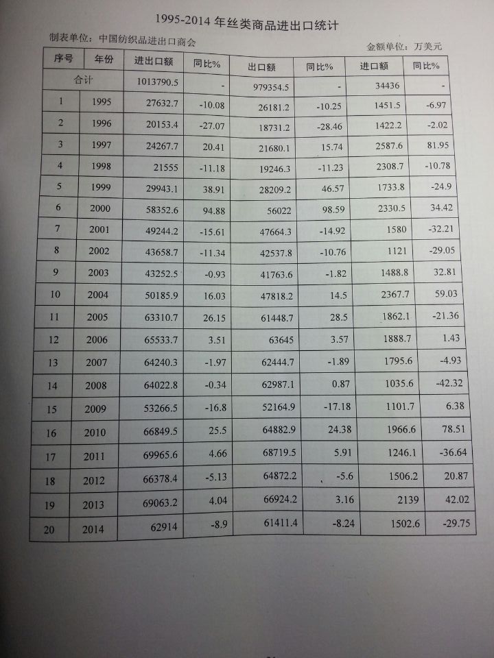 1995-2014年絲類商品進(jìn)出口統(tǒng)計(jì)