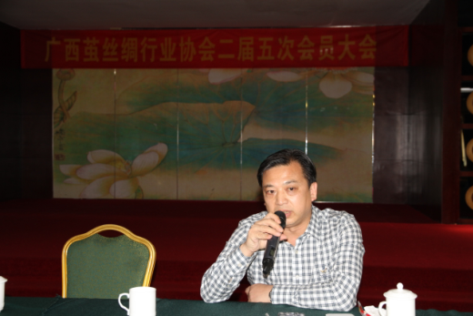 楊處長在會(huì)上對(duì)協(xié)會(huì)所取得的成績(jī)給予了充分的肯定,簡(jiǎn)要分析了2014年我區(qū)繭絲綢行業(yè)的生產(chǎn)經(jīng)營狀況并總結(jié)了2014年繭絲辦的主要工作:一是繼續(xù)深入貫徹落實(shí)國家商務(wù)部等8部門《關(guān)于進(jìn)一步促進(jìn)繭絲綢行業(yè)健康發(fā)展的意見》的精神,加強(qiáng)行業(yè)宏觀指導(dǎo),促進(jìn)廣西繭絲綢業(yè)健康快速發(fā)展;二是頒布了《廣西繭絲綢業(yè)發(fā)展規(guī)劃(2014-2020)》;三是積極爭(zhēng)取國家和自治區(qū)各項(xiàng)扶持資金,支持廣西繭絲綢行業(yè)的快速發(fā)展;四是加強(qiáng)行業(yè)規(guī)劃管理工作,出臺(tái)2014年蠶繭收購指導(dǎo)價(jià)格。最后楊處長通報(bào)了自治區(qū)繭絲辦2015年工作重點(diǎn):繼續(xù)組織實(shí)施廣西繭絲綢發(fā)展規(guī)劃,主動(dòng)適應(yīng)經(jīng)濟(jì)發(fā)展新常態(tài),調(diào)整產(chǎn)業(yè)結(jié)構(gòu),加強(qiáng)絲綢生產(chǎn)深加工,延長產(chǎn)業(yè)鏈,力爭(zhēng)在“十三五”期間開創(chuàng)廣西繭絲綢產(chǎn)業(yè)的新局面。