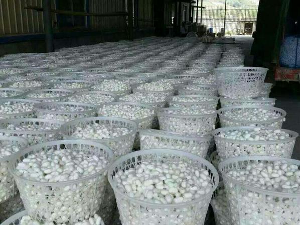 自本月中下旬以來,廣西各地春繭紛紛上市。目前,宜州、忻城等地進入春繭上市高峰期。以下照片為宜州市今日收購的第一批春繭,經(jīng)金蠶網(wǎng)駐廣西人員現(xiàn)場了解到,今日收購價格價格在每公斤36.4元到37.6元。根據(jù)目測,解舒估計62至68,清潔凈度也不錯,整體感覺好于前幾年第一批春繭。