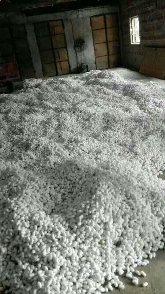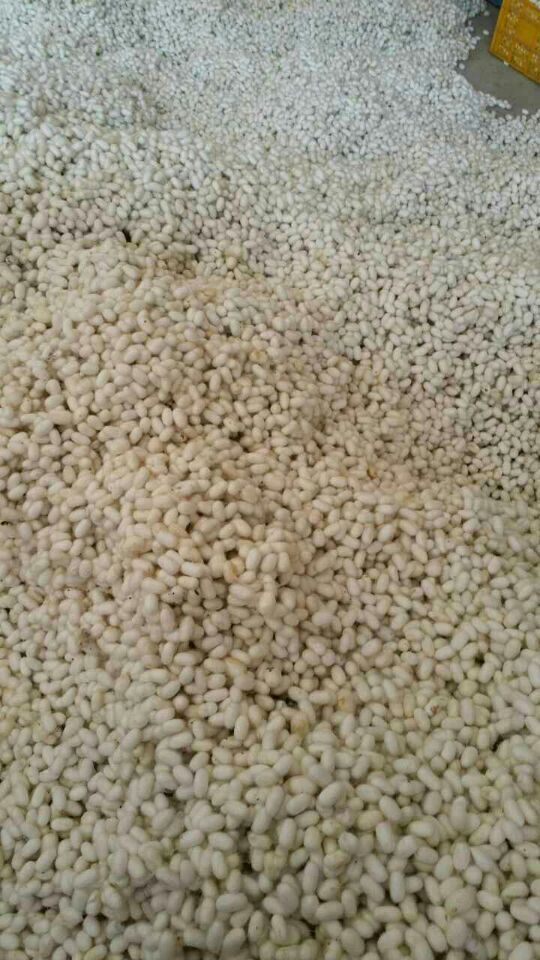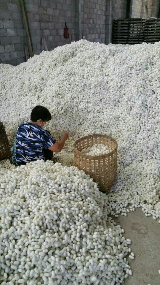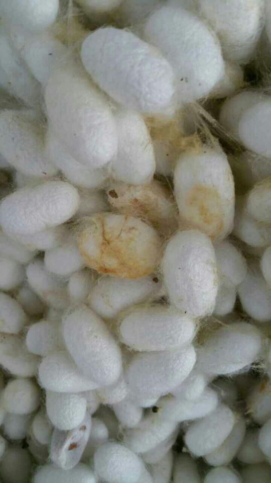 目前,廣西宜州市進入第二批收繭高峰。據(jù)金蠶網(wǎng)工作人員現(xiàn)場了解到,受當(dāng)?shù)靥鞖庥绊?雨水偏多),繭質(zhì)略遜于第一批繭。主要是顆粒不均勻,黃斑及薄皮繭較多。今日收購價格在每公斤36元~38元之間。