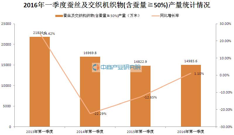 2016年一季度中國蠶絲及交織機織物產量統(tǒng)計分析