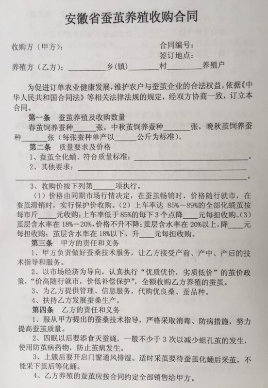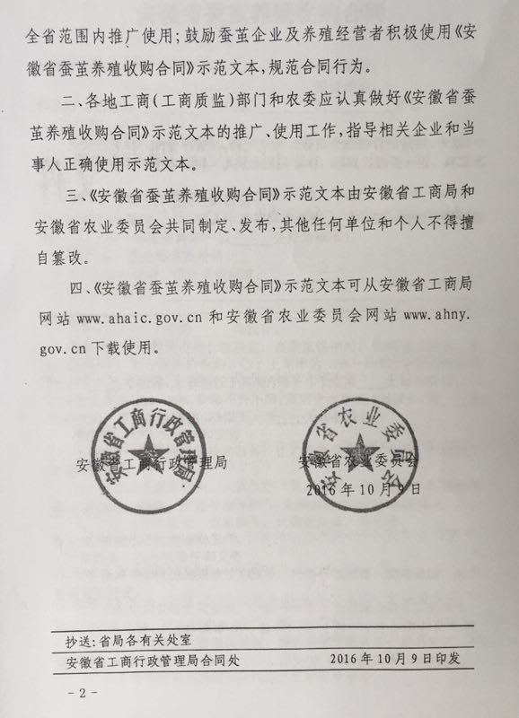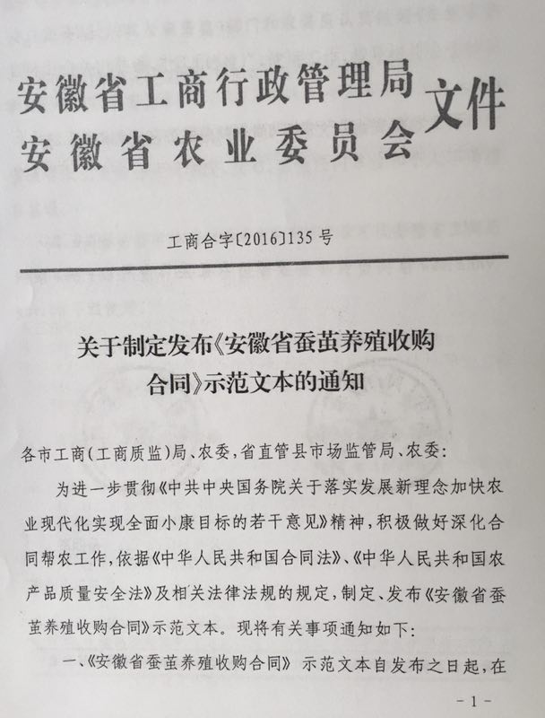 安徽省工商管理局 安徽省農(nóng)委關(guān)于制定發(fā)布《安徽省蠶繭養(yǎng)殖收購(gòu)合同》示范文本的通知