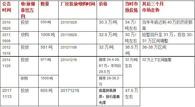 “拋儲了……”“價格跌了嗎?……”“價格跌了多少?……”, 國家拋儲價格就下跌是偏見。上漲趨勢中廠絲投放后價格上漲的概率大,而在下跌趨勢中的廠絲投放價格下跌的概率也最大。