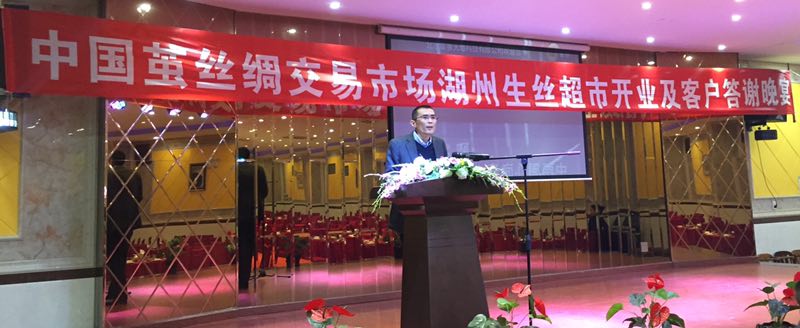 晚間,中國繭絲綢交易市場湖州生絲超市開業(yè)暨客戶答謝晚宴隆重舉行。一百多名絲綢企業(yè)家蒞臨現(xiàn)場,氣氛熱烈。晚宴由市場徐錚副總經(jīng)理主持。市場劉卓明總經(jīng)理對大家的到來表示熱烈的歡迎,對絲綢企業(yè)對市場多年的信任和支持表示衷心的感謝。他在致辭中表示,市場設(shè)立湖州生絲倉庫有兩個初衷:聚物和聚人。所謂聚物,也就是繭絲綢市場積極利用平臺資源把中西部主產(chǎn)區(qū)的繅絲企業(yè)的產(chǎn)品進(jìn)行匯集,給大家多一份選擇,讓大家買到最適合自己的產(chǎn)品,從而降低采購成本、縮短采購時間;所謂聚人,就是生絲超市積極打造信息和價格走勢的交流場所,中西部的生產(chǎn)和收購情況傳導(dǎo)給大家,另一方面也把湖州終端信息和流行趨勢反向傳導(dǎo),實現(xiàn)雙向的交流。劉總希望大家繼續(xù)給與繭絲綢市場支持,市場也會全心全意為大家做好服務(wù)工作。