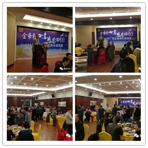 久久聯(lián)合,歲歲相長(zhǎng)。2017年12月18日,中國(guó)繭絲綢交易市場(chǎng)2017年(廣西區(qū))客商答謝晚宴在宜州區(qū)東正國(guó)際大酒店圓滿(mǎn)舉行。答謝晚宴邀請(qǐng)了當(dāng)?shù)叵嚓P(guān)部門(mén)領(lǐng)導(dǎo)、百余位廣西區(qū)內(nèi)客商和區(qū)外部分外貿(mào)客商參加。大家歡聚一堂,相互交流、共敘友情。