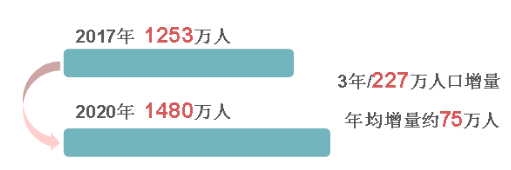 根據(jù)《深圳十三五規(guī)劃》,到2020年深圳常住人口預(yù)期目標(biāo)1480萬(wàn)人,2017年是1253萬(wàn)人,可見(jiàn)未來(lái)三年深圳常住人口還有227萬(wàn)的增長(zhǎng)空間,年均可增長(zhǎng)約75萬(wàn)人。