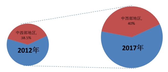 圖6 2012年和2017年中西部地區(qū)社會(huì)消費(fèi)品零售總額占比