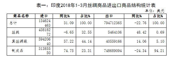 從分類商品來看,今年1-3月中國絲類對印度出口大幅下降,一方面確實受到越南等多低價絲的沖擊,但我們也看到,絲類出口下降的同時,綢緞和絲綢制成品出口在大幅增加。
