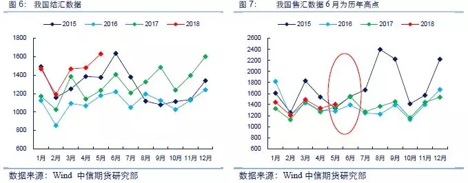 1)美元指數(shù)迅速走強(qiáng);2)6、7月正逢人民幣內(nèi)部季節(jié)性購(gòu)匯旺季,此前內(nèi)部偏結(jié)匯的外匯市場(chǎng)結(jié)構(gòu)對(duì)人民幣雙邊匯率的支撐力量或?qū)⒂兴鶞p弱;3)貿(mào)易戰(zhàn)的不確定性增加市場(chǎng)對(duì)我國(guó)內(nèi)部的擔(dān)憂。