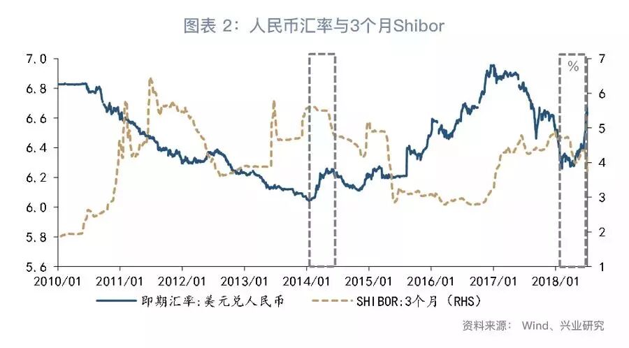 當(dāng)前的利率、匯率情況與2014年上半年極為類(lèi)似,即在Shibor高點(diǎn)探明前后,人民幣匯率出現(xiàn)了快速的貶值。在我們看來(lái),這種相似可能并非偶然,而其實(shí)背后蘊(yùn)含著相似的基本面因素驅(qū)動(dòng)。