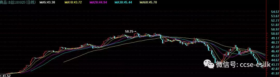 今日盤面前月合約價(jià)格小幅反彈,遠(yuǎn)月合約價(jià)格小幅走低,但主力合約180925今日第三天收出陽(yáng)線并在43萬(wàn)以上小幅走高,給市場(chǎng)信心給予一定提振,周五,現(xiàn)貨廠絲貿(mào)易積極性明顯有所升溫,并且有所成交。