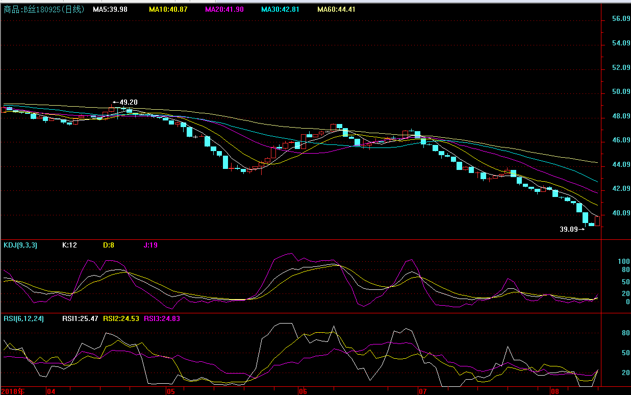 從180925生絲技術(shù)指標(biāo)來看,強(qiáng)弱指標(biāo)6日RSI指標(biāo)線由下向上交叉并開始穿越12日、24日RSI指標(biāo)線;隨機(jī)指標(biāo)KDJ數(shù)值比較且J線拐頭向上,顯示買方力量逐步增強(qiáng)。