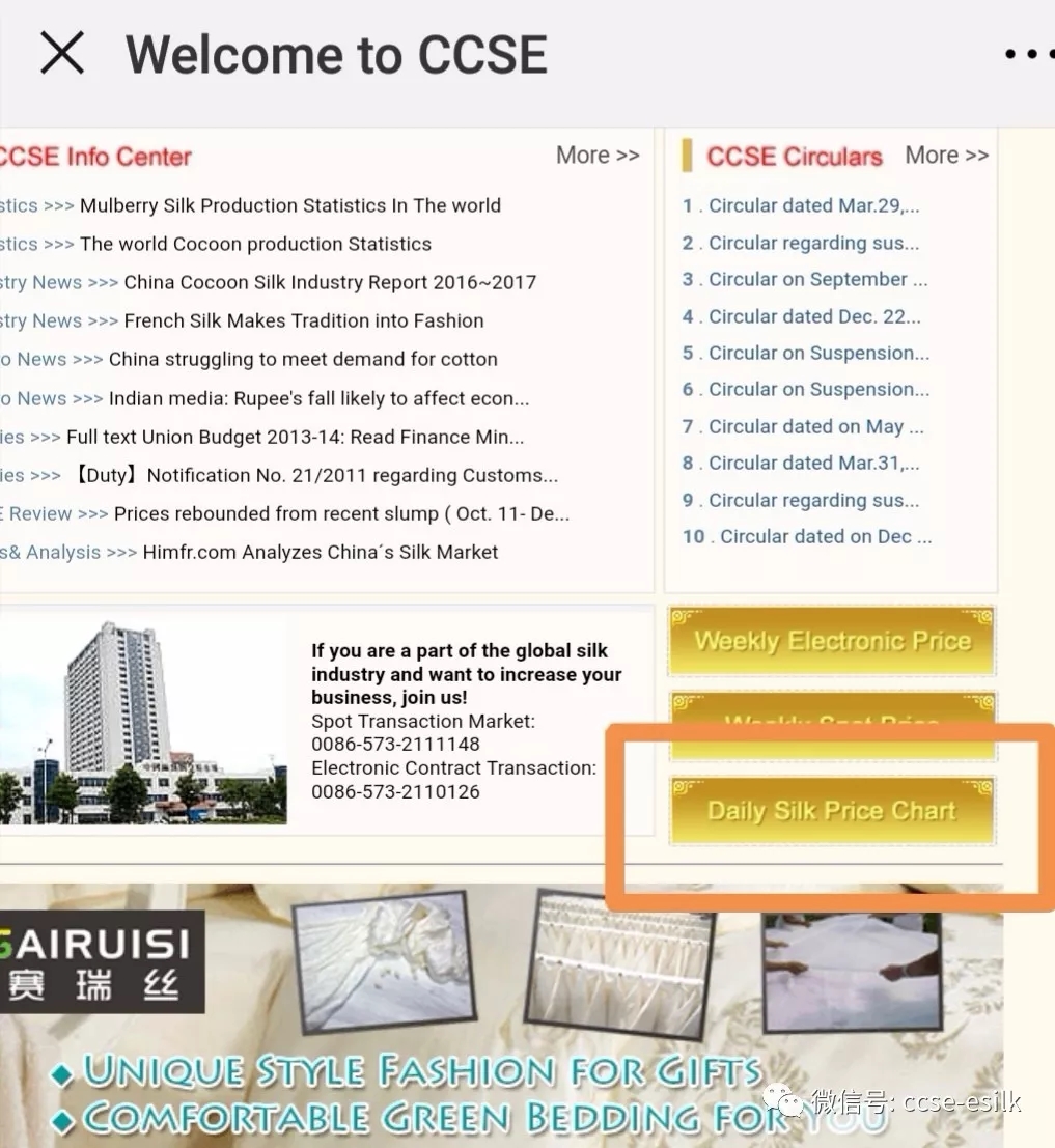又到下單季。近期有外貿(mào)公司和外商詢問方便的直觀絲價走勢。為利于和外商的溝通,每日生絲收盤價走勢圖入口置于金蠶網(wǎng)英文版首頁處,點擊鏈接見,需要請點擊鏈接并保存。