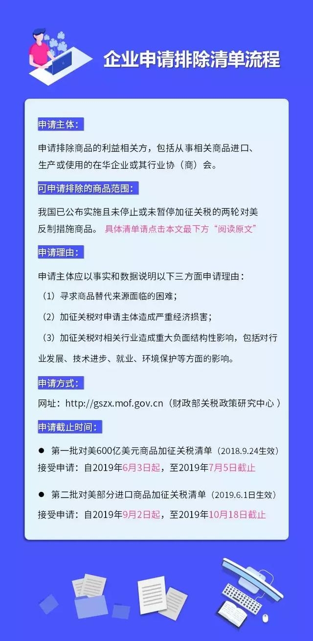 對(duì)排除清單內(nèi)商品,自排除清單實(shí)施之日起一年內(nèi),不再加征我為反制美301措施所加征的關(guān)稅;具備退還稅款條件的,對(duì)已加征的關(guān)稅稅款予以退還,相關(guān)進(jìn)口企業(yè)應(yīng)自排除清單公布之日起6個(gè)月內(nèi)按規(guī)定向海關(guān)申請(qǐng)辦理。對(duì)排除清單公布前已經(jīng)停止或已暫停加征關(guān)稅的商品,已加征關(guān)稅不予退還。