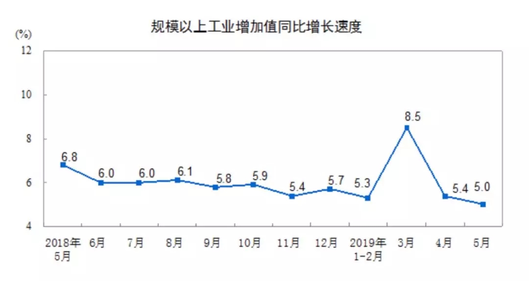 宏觀上,北京時(shí)間14日15點(diǎn),中國國家統(tǒng)計(jì)局公布了5月份經(jīng)濟(jì)數(shù)據(jù)。重要數(shù)據(jù)如下:工業(yè)增加值同比增5%,預(yù)期5.4%,前值5.4%;