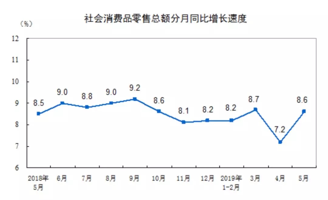 社會消費(fèi)品零售總額同比增8.6%,預(yù)期8.1%,前值7.2%;