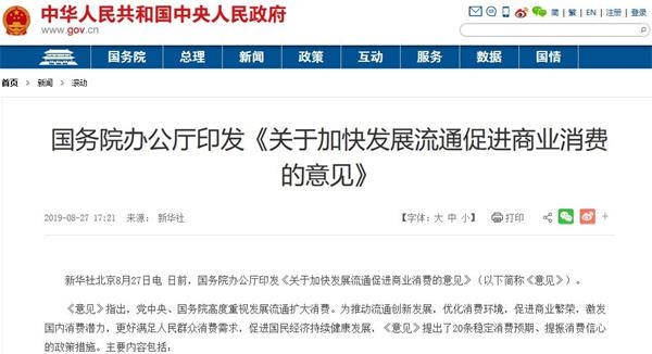 國(guó)務(wù)院8月27日發(fā)布了《關(guān)于加快發(fā)展流通促進(jìn)商業(yè)消費(fèi)的意見》(簡(jiǎn)稱《意見》),提出20條提振消費(fèi)信心措施,包括逐步放寬或取消汽車限購(gòu),支持商品以舊換新,擴(kuò)大成品油市場(chǎng)準(zhǔn)入,鼓勵(lì)金融機(jī)構(gòu)創(chuàng)新消費(fèi)信貸產(chǎn)品和服務(wù),加大對(duì)新消費(fèi)等金融支持等,針對(duì)流通消費(fèi)領(lǐng)域存在的一些瓶頸和短板進(jìn)行了完善,并進(jìn)行了部門分工,培育消費(fèi)熱點(diǎn)。