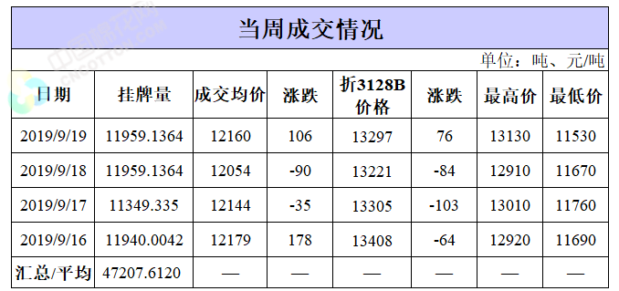 截至9月19日,累計計劃出庫107.06萬噸,成交最高價15930元/噸,成交最低價10750元/噸。