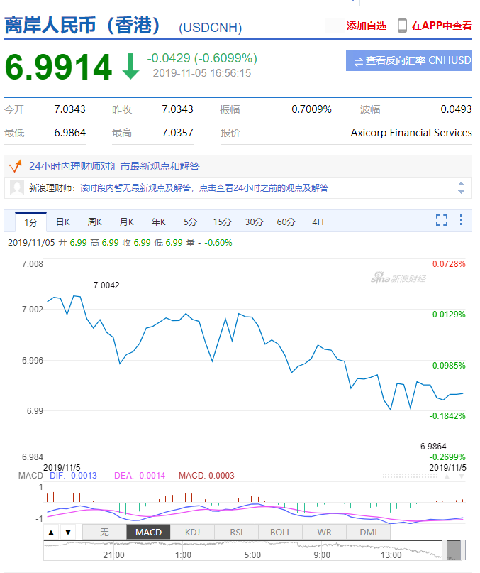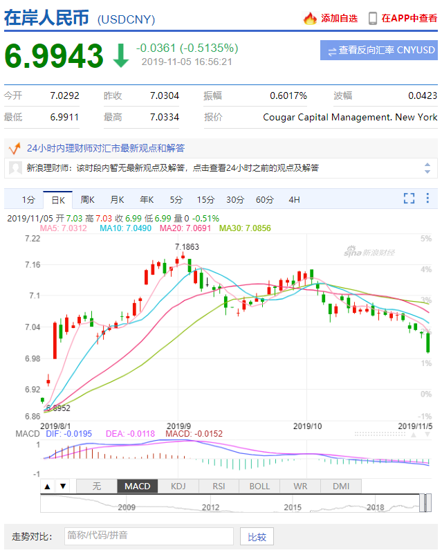 人民幣匯率(20191105)