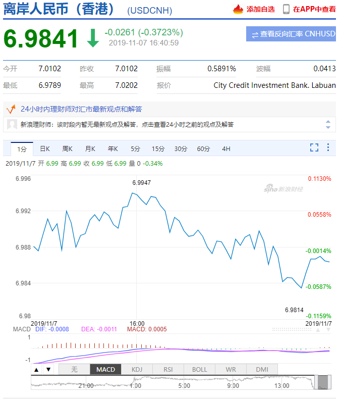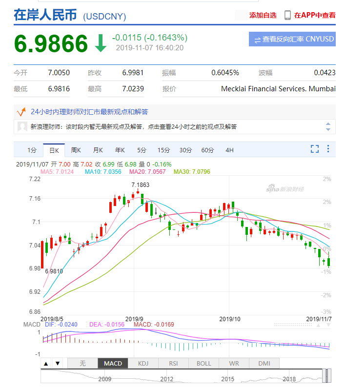 人民幣匯率(20191107)
