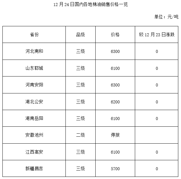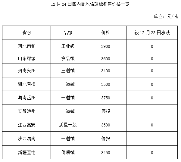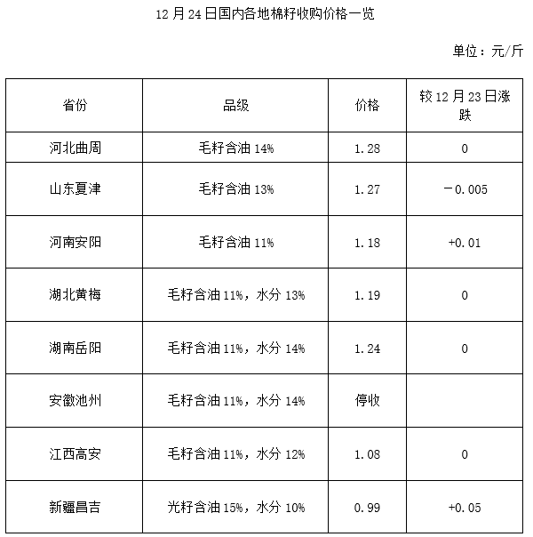 12月24日國內(nèi)棉副價格一覽