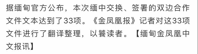 33項緬中雙邊合作項目(完整版)兩國元首共同見證