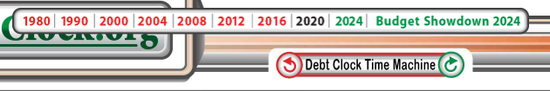 這種巨量的公共債務(wù)激增在一年前是無法想象的。在美國債務(wù)時(shí)鐘組織的“國債鐘”官網(wǎng),一個(gè)很少使用的功能出現(xiàn)在頂行的右側(cè),在這個(gè)“國債鐘時(shí)間機(jī)(Debt Clock Time Machine)”按鈕里,可以看到過去幾個(gè)時(shí)期的債務(wù)和其他數(shù)據(jù),甚至還提供了對(duì)四年后當(dāng)前預(yù)期的看法。該組織對(duì)2024年的國債預(yù)估達(dá)到了43萬億美元。