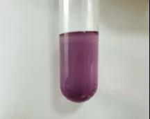 新版《蠶絲被》標(biāo)準(zhǔn)中,附錄C方法主要是往蠶絲絲綿中加入濃鹽酸(12moL/L,濃度為36%~38%)中,在室溫環(huán)境下溶解后形成淺黃色溶液,經(jīng)過一定時間后,通過溶液顏色的變化來判定是否為增重絲綿。一般情況下,未增重的絲綿會變成紫色,增重過的絲綿則不變色。如圖1所示。