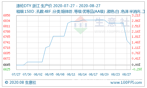 | 滌綸DTY(150D/48F低彈) | 6838 | 6732 | -1.55% | -26.61% |