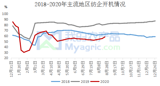 目前原料皮棉價格底部重心上移,導致紡企紡紗成本增加,部分紗廠試探性上調紗線價格100-200元/噸,加之即將迎來“金九銀十”傳統(tǒng)紡織旺季,下游后道訂單會陸續(xù)下達,紡織廠在九月會出現集中加工的現象,則棉紗價格或將迎來拐點,開始震蕩上行的通道。從相關機構調查得知,棉紡織、服裝企業(yè)普遍認為在疫情防控、中美關系陷入僵局以及收入預期不斷下降的大環(huán)境下,“金九銀十”傳統(tǒng)紡織旺季的成色略顯不足,因此大部分紡企采取隨用隨買原料和成品去庫存操作,資金回籠的同時降低現金流壓力,避免資金斷裂的風險。