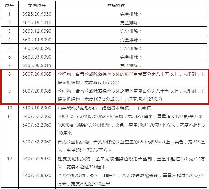 出口企業(yè)注意啦!2000億美元加征關(guān)稅產(chǎn)品排除清單(涉及絲綢商品稅號)又有新修訂