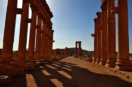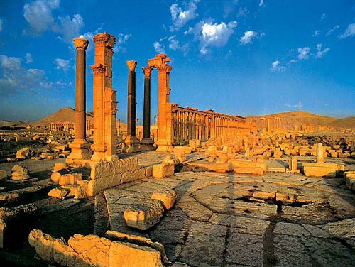 羅馬帝國時期,巴爾米拉快速崛起,公元2世紀(jì)達(dá)到鼎盛,成為羅馬帝國東部最大、最繁榮的城市。整個城市面積約為20平方公里,居民估計有15萬—20萬人。在水、糧食等資源非常有限的沙漠之中,能夠建造起這樣大規(guī)模的城市,可以說是一個奇跡。巴爾米拉城中遍布各類建筑物,包括雄偉的凱旋門、莊嚴(yán)的公民會堂、神圣的廟宇、寬闊的露天劇院、舒適的公共浴堂、雅致的貴族私宅等。那些經(jīng)歷了將近兩千年風(fēng)雨滄桑的文物古跡,直到今天依然令人驚嘆不已。