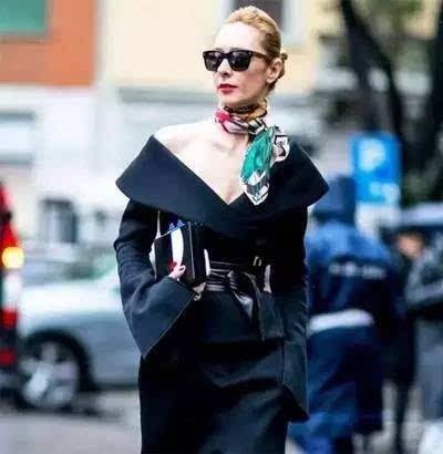 素色衣服搭配素色絲巾??刹捎猛祵?duì)比搭配法,如黑色連衣裙配中性色系絲巾,整體感強(qiáng),但搭配不慎會(huì)造成整體色彩黯淡;也可以采用不同色系的對(duì)比色搭配法;另外采用相同顏色、不同質(zhì)感的搭配方式也很協(xié)調(diào)。