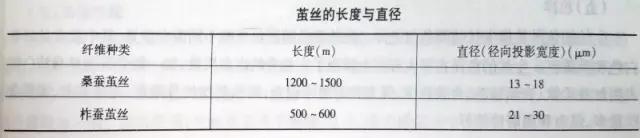 桑蠶和柞蠶的繭絲長度和直徑的變化范圍(內(nèi)含兩個絲素纖維)見下表: