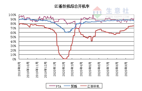 近期中國輕紡城家紡市場來自各地的采購商局部增加,網(wǎng)絡直播對口客商下單增加,窗簾布、裝飾用布繼續(xù)多品種互動,以滌綸長絲為主原料的裝飾家居布藝營銷走勢頗為樂觀,成交繼續(xù)震蕩推升。多數(shù)下游企業(yè)在8月中旬秋冬訂單開始增多,尤其是受國慶節(jié)前采購動作影響,江浙織機綜合開機率逐步提升至74%以上。但是下游訂單跟進持續(xù)性不足,且整體訂單數(shù)量較往年偏低。